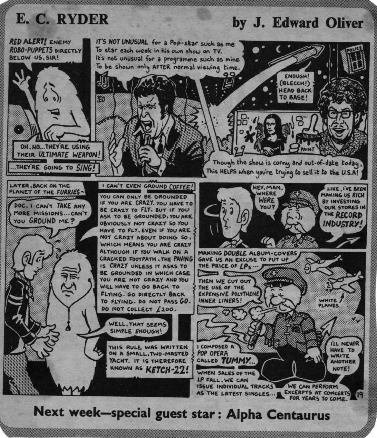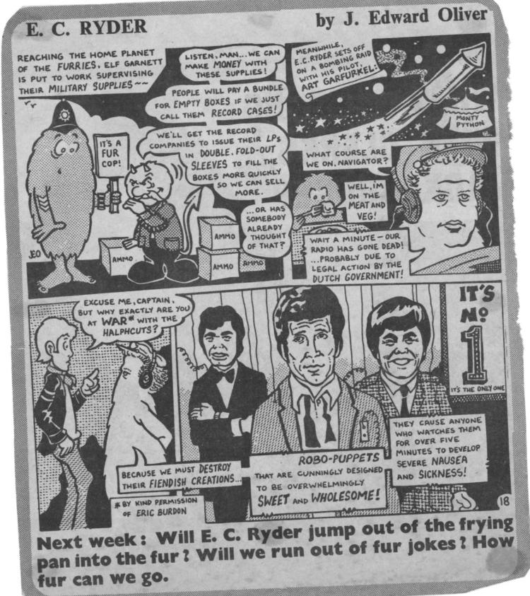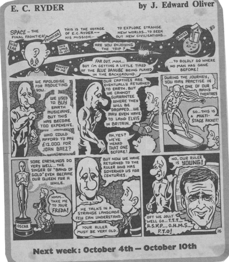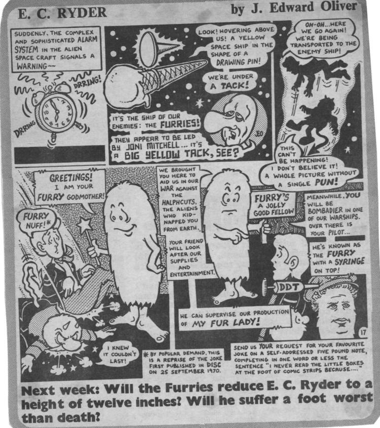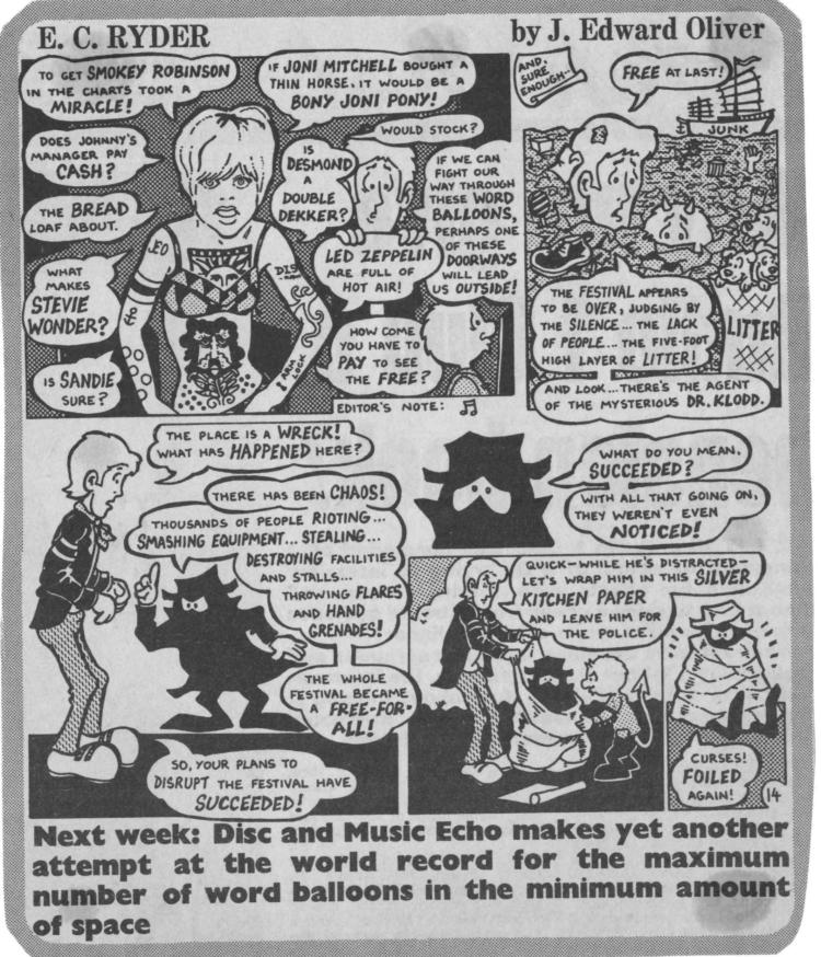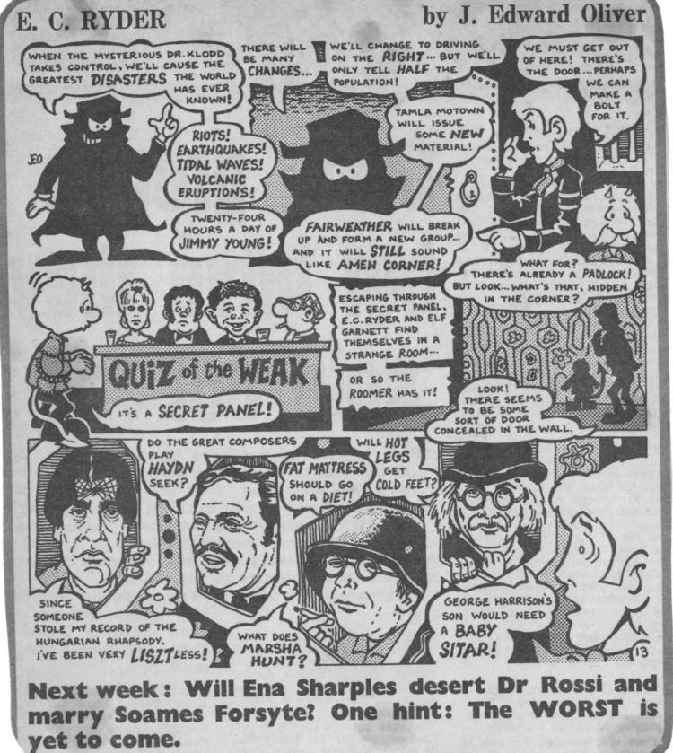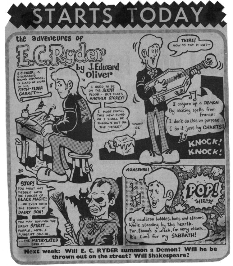 The complete Disc and Record Mirror episodesThese are scanned from the originals in the papers. Please remember that some are over 50 years old.Click on a strip to enlarge and read it. The arrows at the bottom right of each enlargement allow you to expand it more, making it easier to read.Read across the rows first, then down to the next row.The arrow at the bottom right of the web page takes you to the next page.