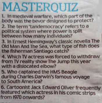 Fred (Jack's brother) has been sent a quiz question (right) from the Daily Mail by Jack's old friend Barry, The